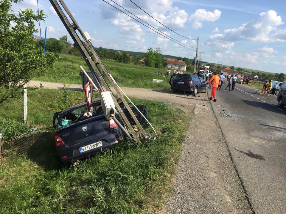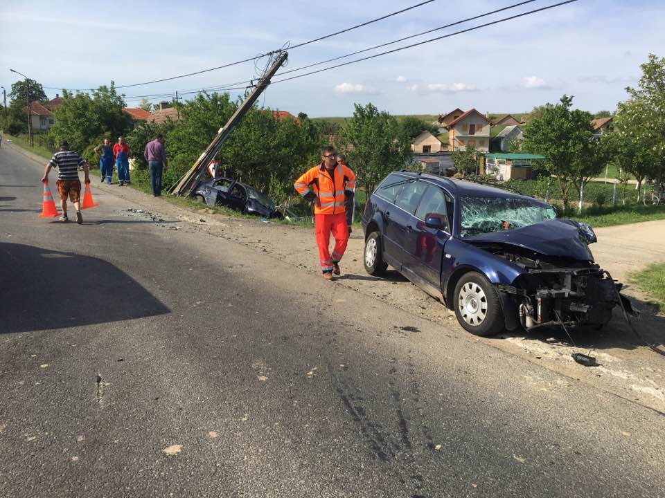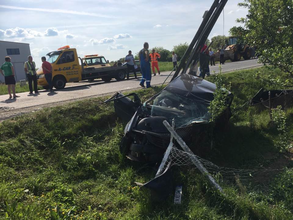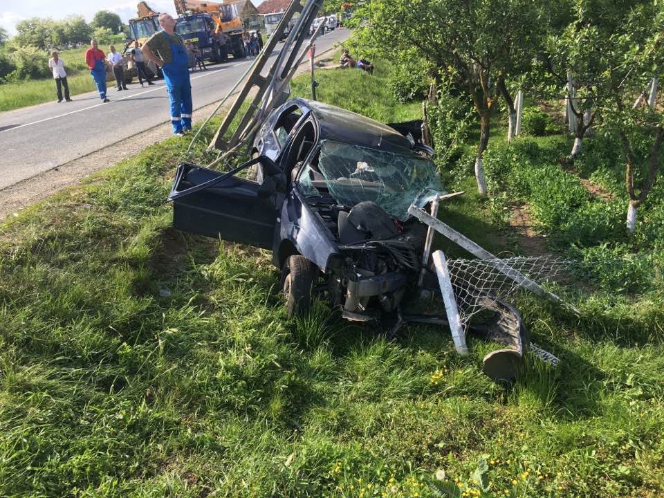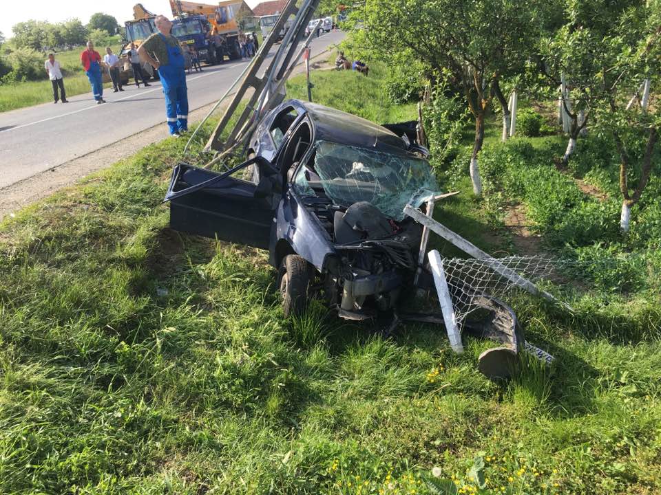 Accident în locul în care au murit patru oameni! Un tânăr a intrat cu mașina în stâlp