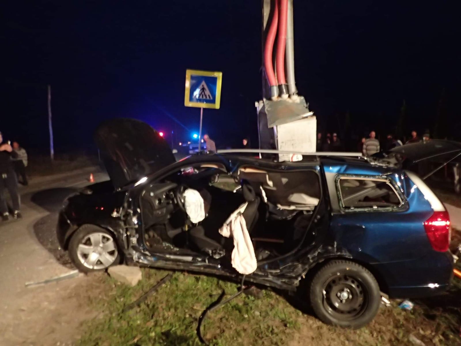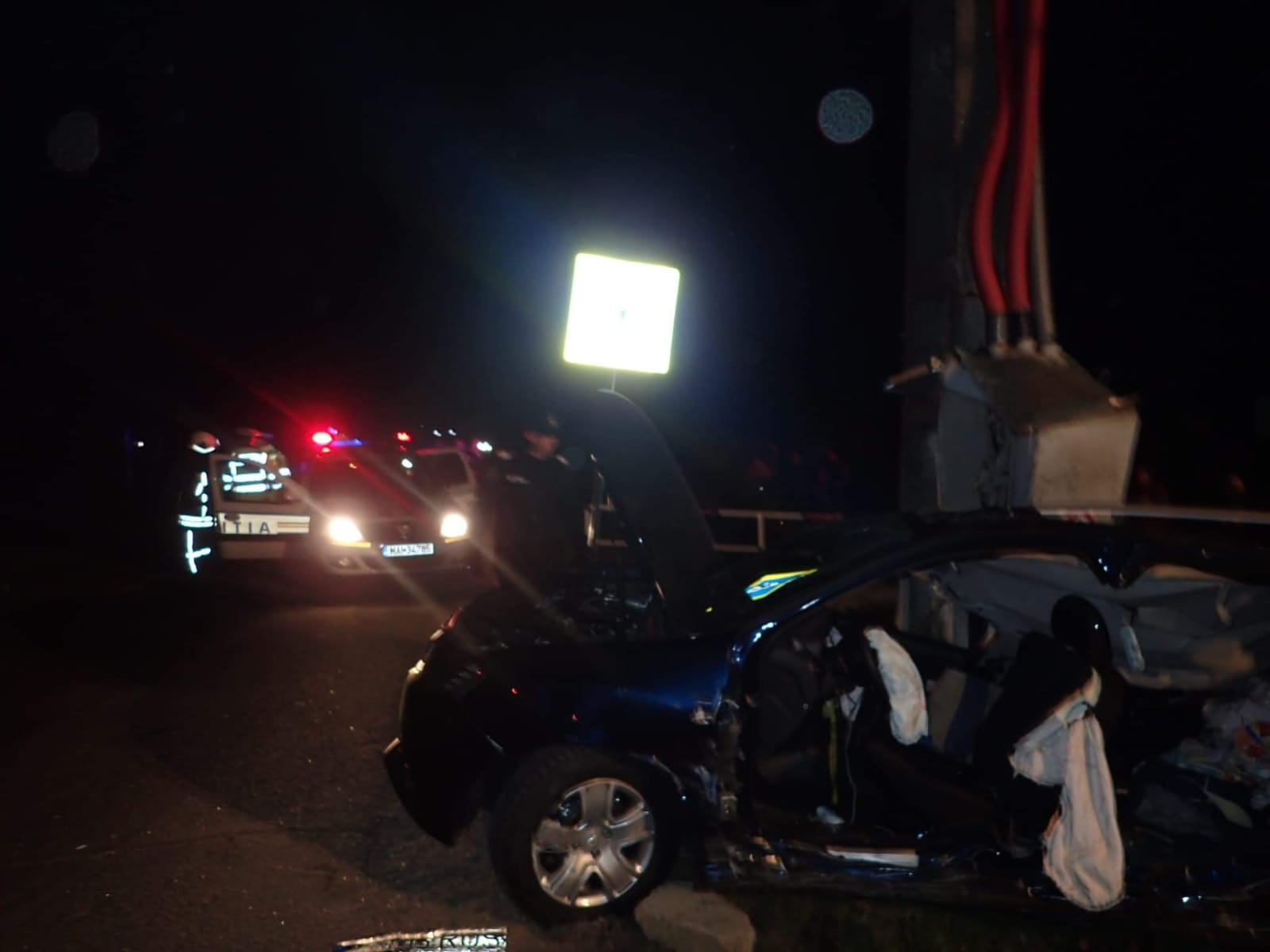 Din cauza impactului deosebit de dur, mașina a lovit stâlpul, iar postul trafo a căzut peste autovehicul. Cei doi pasageri au rămas încercerați. Potrivit prinmelor informații, pasagerii sunt conștienți.