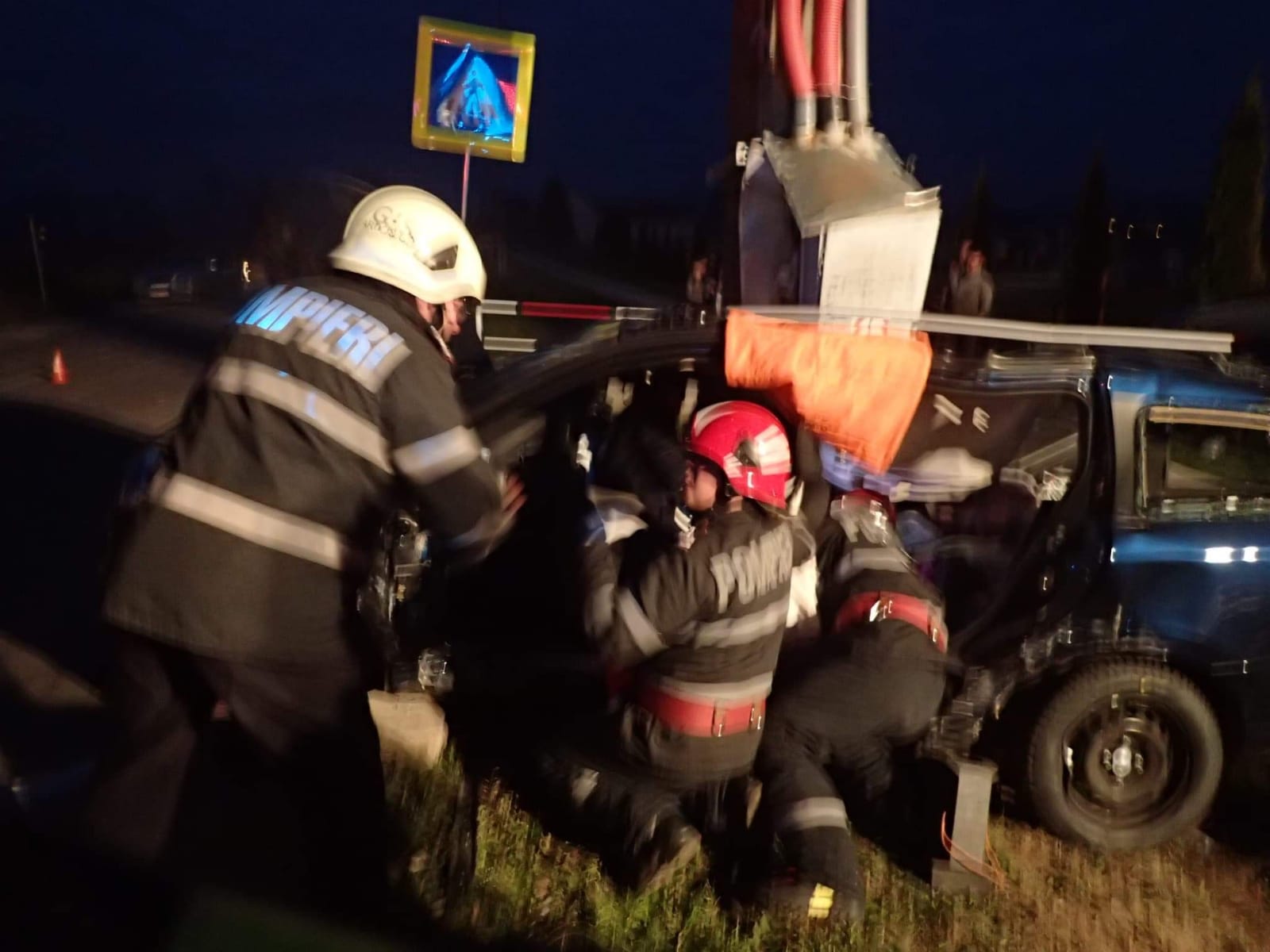 Accident rutier grav, cu două femei încarcerate. Post trafo căzut peste o mașină