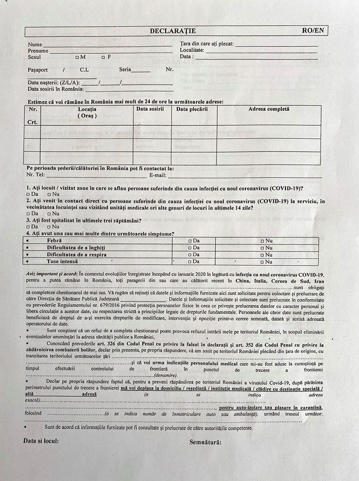 Pasagerilor care sosesc pe Aeroportul Satu Mare cu cursele Wizz Air din Londra (Luton) li se vor oferi spre completare declaraţiile obligatorii (conform prevederilor Codului Penal), din timp, pe durat...