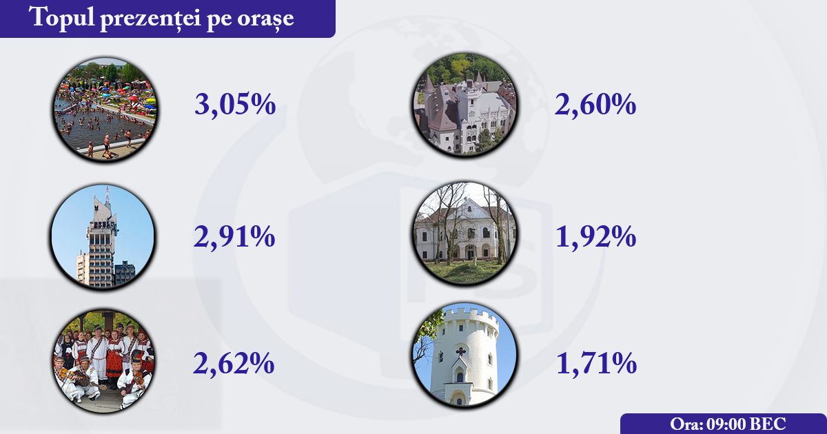 Potrivit datelor Biroului Electoral Central, până la ora 09:00, în județul Satu Mare, la urne s-au prezentat 7.881 de sătmăreni, adică 2,51 din cei înscriși pe listă.