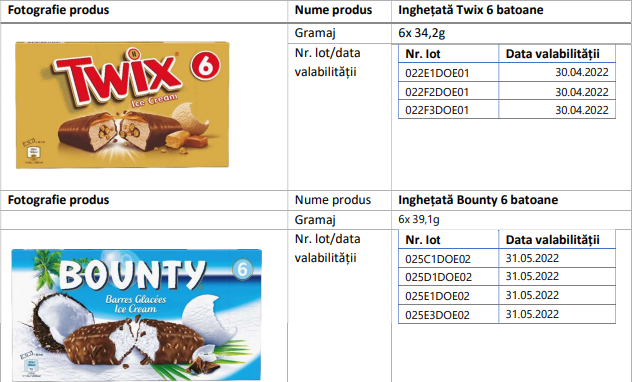 Reprezentanții Carrefour anunță că Mars recheamă voluntar din România mai multe produse de înghețată. Acest