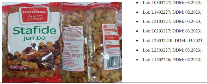 CARREFOUR ROMANIA SA, alături de Autoritatea Națională Sanitar-Veterinară și pentru Siguranța Alimentelor a inițiat retragerea de la comercializare și rechemarea de la clienți (inclusiv în municipiul Satu Mare) a produsului cu datele de identificare de mai jos, ca urmare a depășirii valorilor admise de reziduuri pesticide (Chlorpirifos):