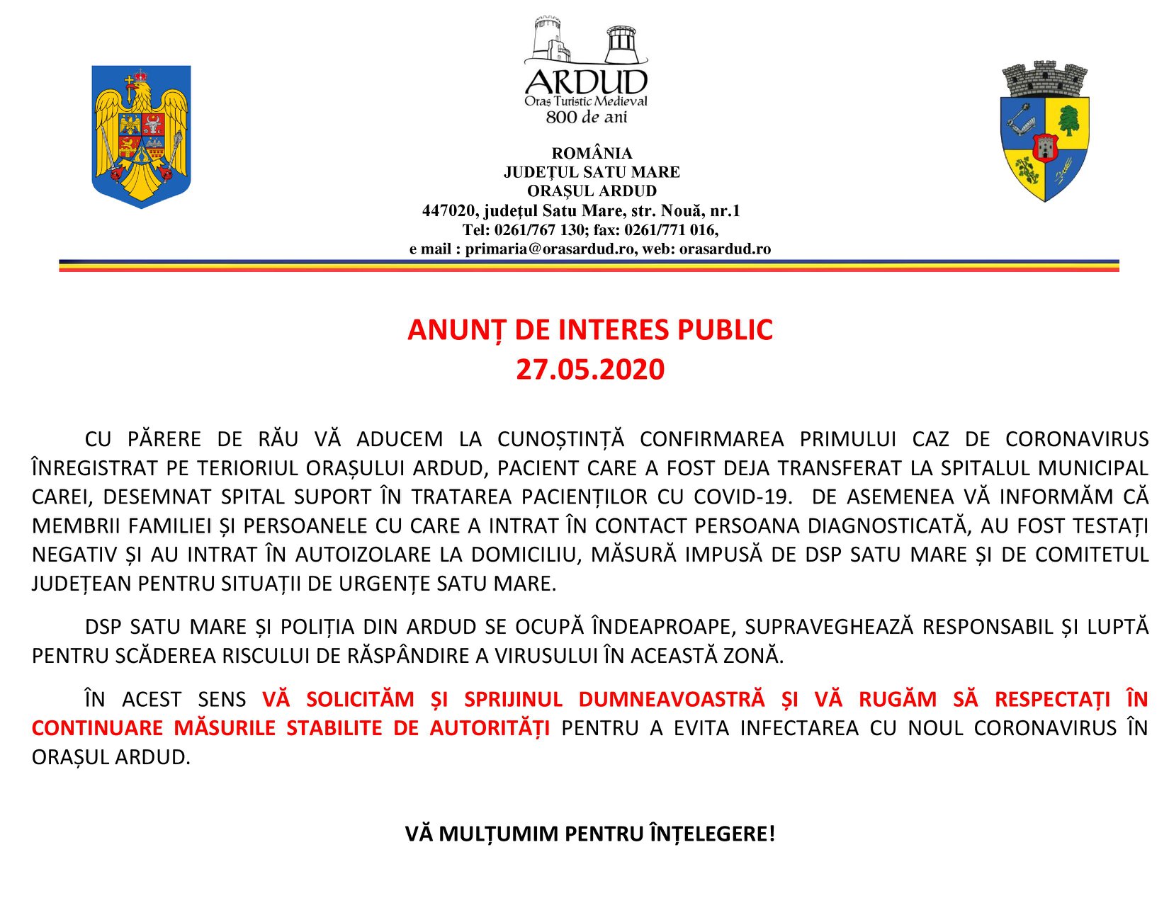 Anunțul Primăriei Ardud a venit la o săptămână după ce a apărut deja articolul în PresaSM. Îl redăm mai jos: