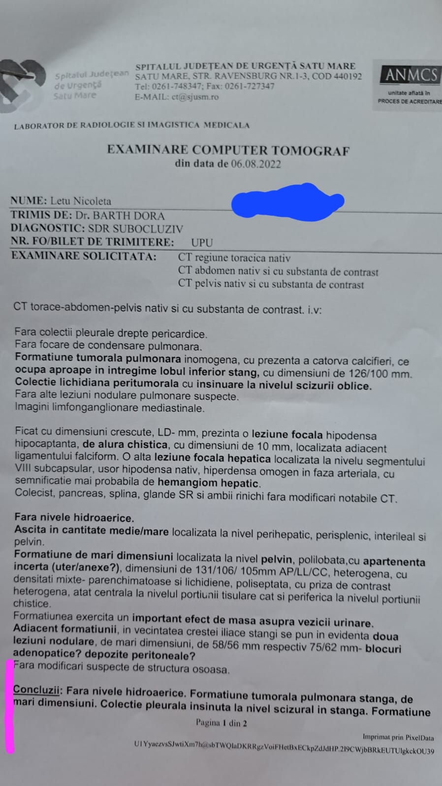 Însă ea are o șansă la viață prin două intervenții chirurgicale foarte costisitoare. Prima, și cea foarte urgentă, costă în jur de 7.000 de euro și ar trebui făcuta foarte repede (fără taxe de spitalizare etc), iar cea de-a doua costă în jur de 16.000 de euro (fără taxe de spitalizare).