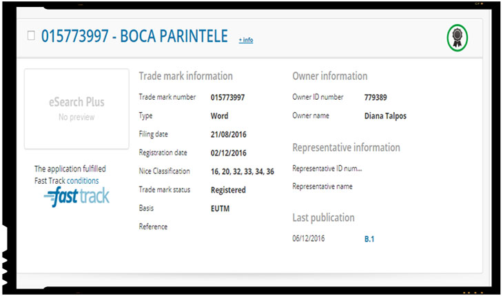 Și asta pentru că "deţinătorul legal al drepturilor de proprietate intelectuală asupra mărcilor înregistrate la nivel european Boca Părintele şi Arsenie, şi asupra imaginii industriale a părintelui Arsenie Boca" sunt două persoane, dintre care una ar fi Diana Talpoș, născută în Satu Mare. În fapt, marca "Boca părintele" este înregistrată pe numele Dianei Talpoş, iar "Arsenie", inclusiv imaginea celebră de pe picturi, pe cel al lui Andor Șandor.