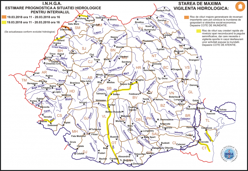 Potrivit codului portocaliu, există risc de viituri majore generatoare de reversări importante care por conduce la inundarea de gospodării și obiective social-economice. Depășire cote de atenție.
