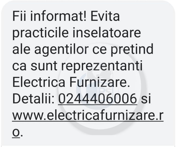 ”Vă rugăm ca, în cazul în care sunteţi contactaţi de astfel aşa-zişi reprezentanţi Electrica, să solicitaţi legitimaţia acestora şi, în cazul în care nu vă este prezentată, sau există îndoieli cu privire la veridicitatea acesteia, să anunţaţi de urgenţă Poliţia”, spun cei de la Electrica.