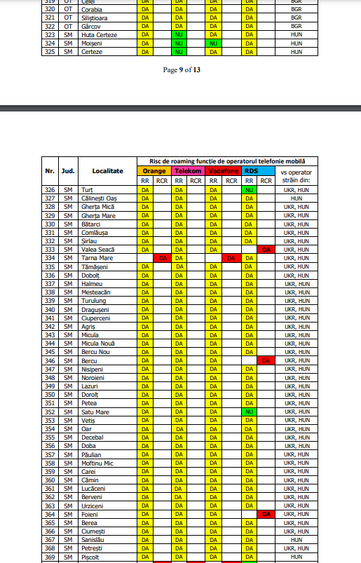 Astfel de panouri ar putea să apară nu doar în Satu Mare. Potrivit ANCOM, sunt 1.092 de localități cu peste 10 locuitori din România care prezintă risc de roaming involuntar și pe care le regăsim în limitele teritoriale a 19 județe: Arad, Bihor, Botoșani, Călărași, Constanța, Caraș-Severin, Dolj, Galați, Giurgiu, lași, Maramureș, Mehedinți, Olt, Satu Mare, Suceava, Tulcea, Timiș, Teleorman și Vaslui.