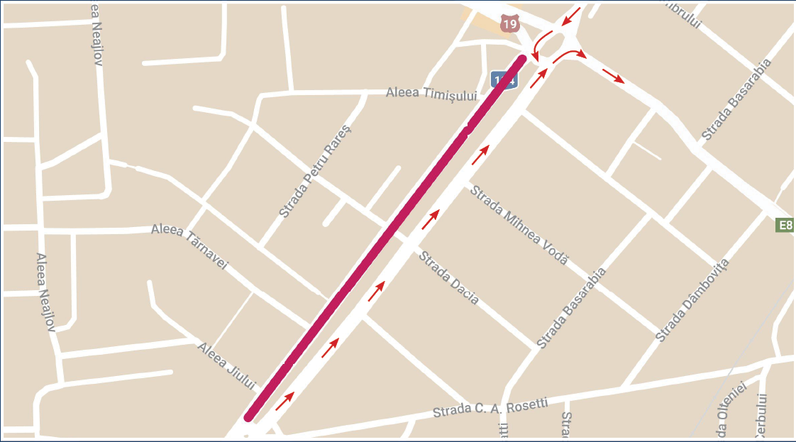 Pe perioada lucrărilor se va circula astfel: pe B-dul. Cloşca dinspre str. C.A. Rosetti spre intersecţia Burdea, dinspre Drum Carei pe B-dul Octavian Goga spre B-dul Lucian Blaga, de pe B-dul Octavian Goga pe str. C.S. Anderco şi str. C.A. Rosetti spre B-dul Cloşca.