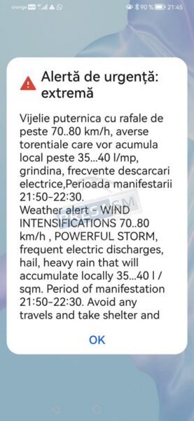 Sătmărenii au fost avertizați și prin sistemul RO-ALERT.