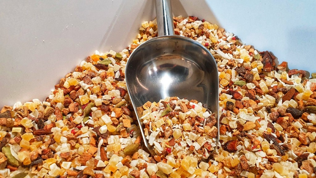 Iar dacă dați o raită prin magazin, cu siguranță nu veți merge acasă cu mâna goală. Rafturile de condimente vă stau la dispoziție cu tot ce aveți nevoie pentru a da savoare meselor de sărbători, iar cei care doresc să savureze o cană de vin fiert, că tot e sezonul, pot găsi aici anason stelat, cuișoare, scorțișoară (pudră sau bețișoare) și nucșoară.