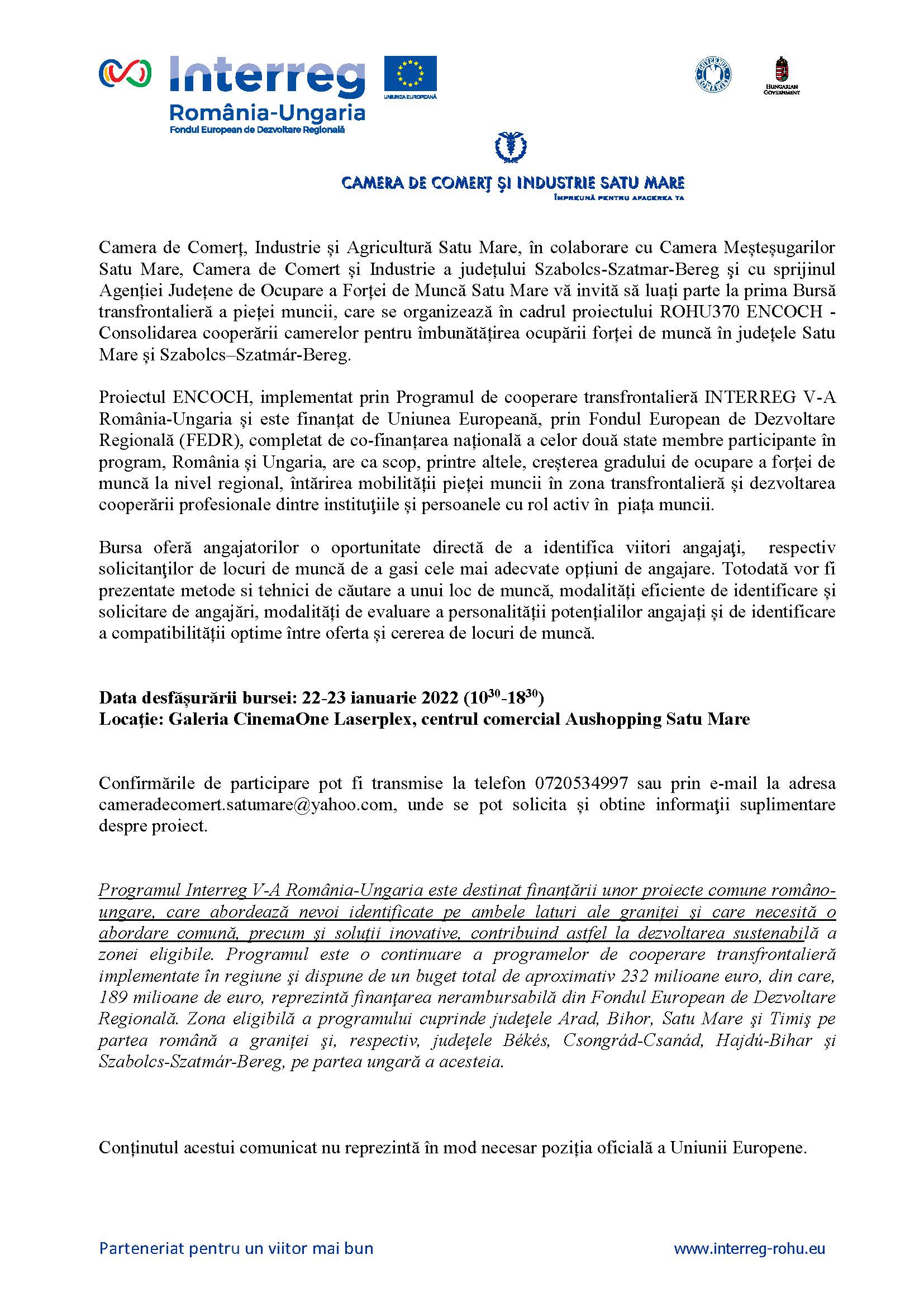 Bursă transfrontalieră a locurilor de muncă în municipiul Satu Mare