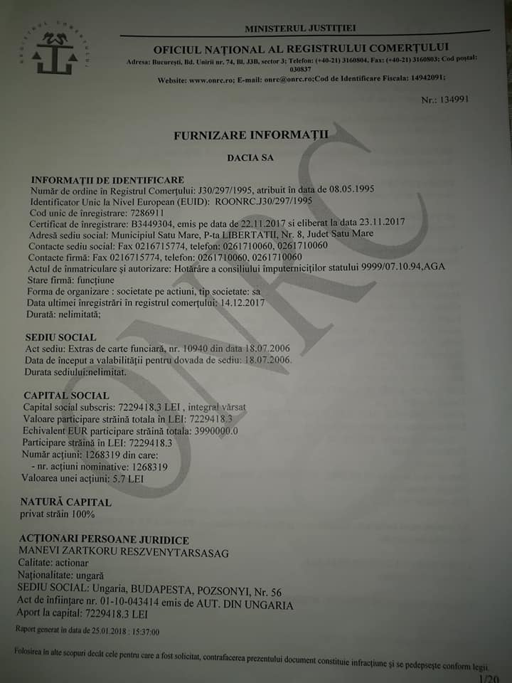 ”Azi am avut o curiozitatea și căutând în informatiile publice ale ONRC am aflat că societatea DACIA SA, în patrimoniul căreia se află clădirea cunoscută de noi Hotelul Dacia, simbolul Sătmarului, a fost cumpărată în data de 08.12.2017 de către MANEVI ZARTKORU RESZVENYTARSASAG, cu sediul social în Budapesta, strada Pozsonyi, nr 56, iar noul administrator fiind aceași societate maghiară, prin Peter Zavodszky, cetățean maghiar.