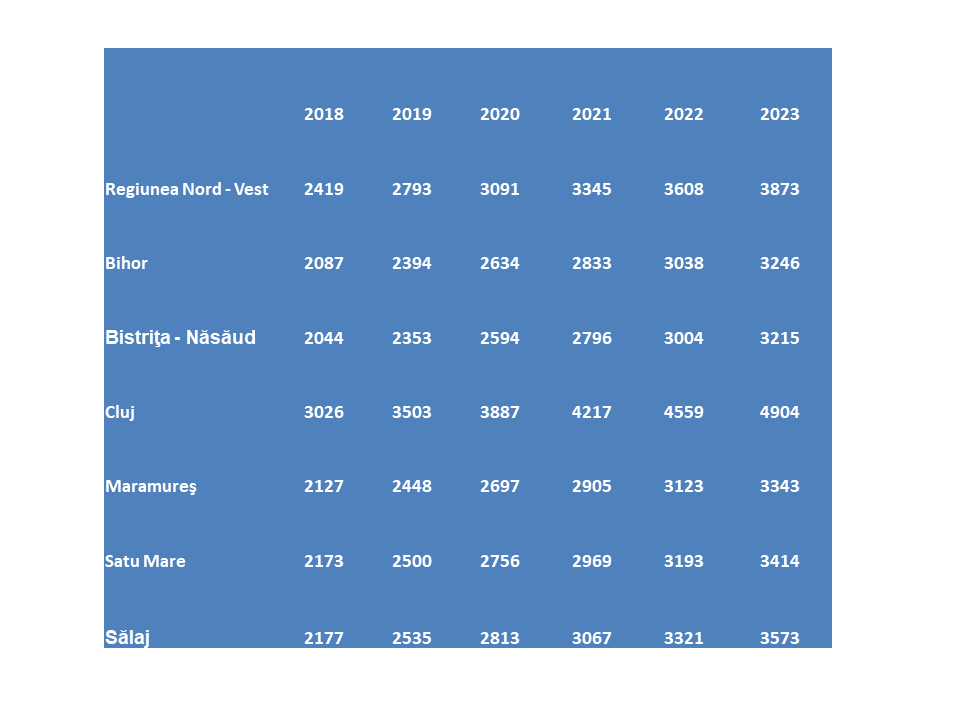 Așa cum era de așteptat, cele mai mari salarii din regiune sunt înregistrate în Cluj. Aici, salariul mediu net este de 3.503 lei. Dar salarii puțin mai mari decât sătmărenii încasează și salariații din Sălaj. Câștigul salarial mediu net este de 2.535.