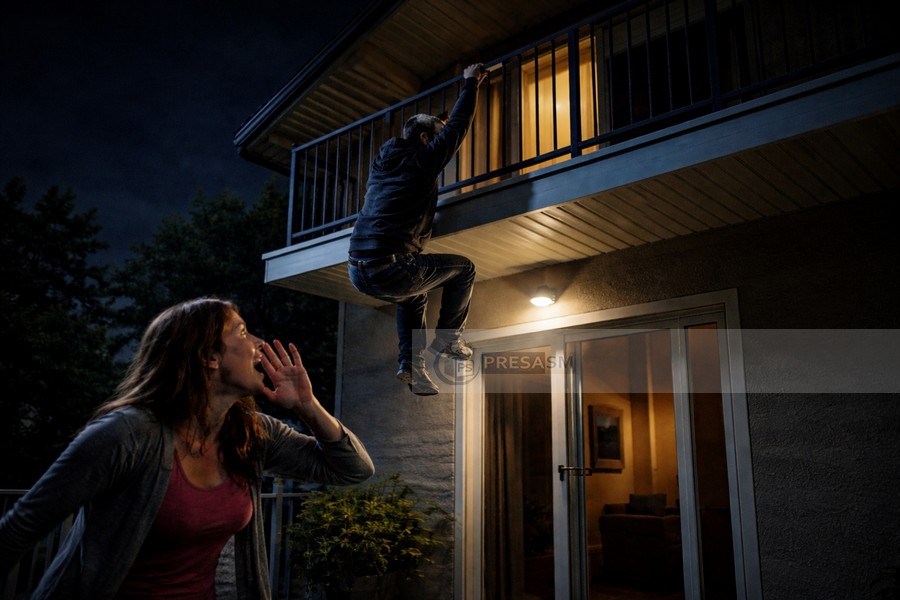 Incidentul a fost observat chiar de proprietarii locuinței. În momentul în care bărbatul încerca să coboare de pe balcon, acesta a fost văzut de o femeie care se afla pe terasa casei împreună cu mama sa. Femeia a declarat că a auzit zgomote provenind de pe balcon, iar la scurt timp l-a observat pe bărbat suspendat, încercând să coboare. Speriată, aceasta a strigat după ajutor. În acel moment, proprietarul a ieșit din locuință și a fugit după suspect, însă nu a reușit să îl prindă, deoarece acesta a sărit gardul și a fugit.