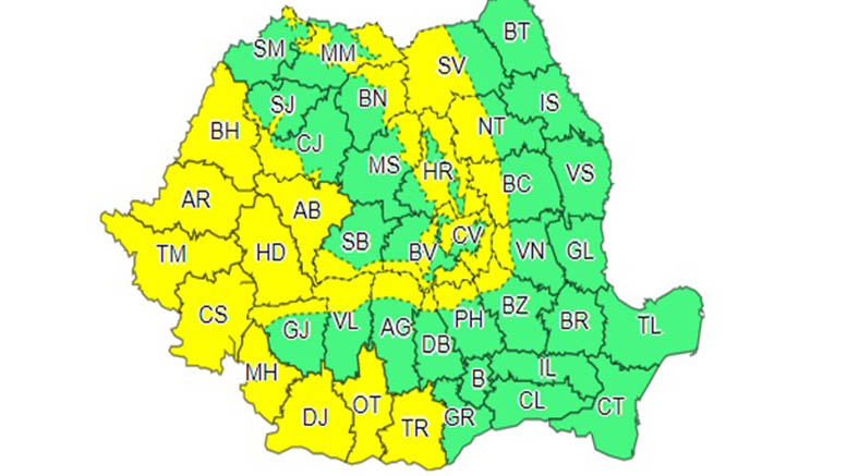 Cod galben în mai multe județe din țară. Zonele din Satu Mare aflate sub avertizare