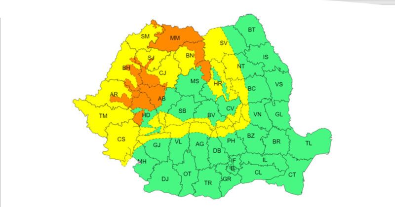 "În intervalul menționat, în județul Maramureș și în zona montană a județelor: Bistrița – Năsăud, Mureș, Bihor, Arad, Hunedoara, Alba, Cluj, Sălaj și Satu Mare se vor acumula cantități de apă de 50…70 l/mp și izolat de peste 80 l/mp", atrag atenția cei de la ANM.