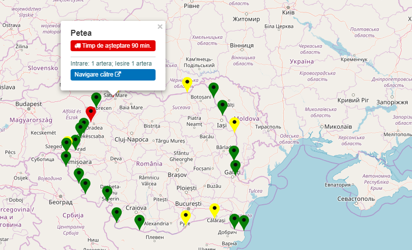 Cod roșu în Punctul de Trecere al Frontierei Petea, potrivit aplicației Info Trafic al Poliției de Frontieră. Șoferii de TIR trebuie să aștepte peste 90 de minute să tranziteze punctul. Se lucrează pe un sens de intrare în România și pe un sens de ieșire din țară.