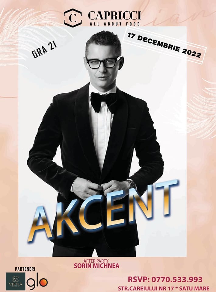 „Cine nu a fredonat măcar o dată piesele celor de la Akcent?! În acest weekend, ai șansa să le cânți împreună cu ei, la Capricci”, transmit reprezentanții restaurantului.