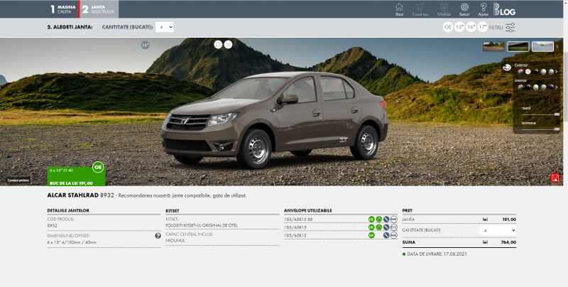 Iar un avantaj distinct al configuratorului 3D JANTA.RO este faptul că ilustrează realist automobilul. Astfel, utilizatorii pot vedea întocmai cum va arăta mașina cu acele jante. În plus, configuratorul permite selectarea culorii pentru caroserie și tapițerie, gradul de transparență al geamurilor, precum și înălțimea gărzii la sol.