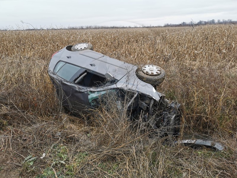 Ajunși la fața locului, polițiștii au constatat faptul că un conducător auto, a pierdut controlul volanului autoturismului pe care îl conducea și s-a răsturnat în șanțul din partea dreaptă a drumului.