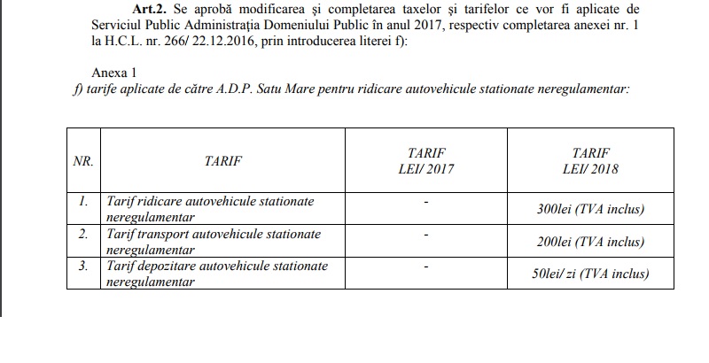 Surse din cadrul Primăriei Satu Mare au confirmat pentru PresaSM.ro că s-a convenit cu cei de la Administrația Domeniului Public asupra nivelului taxelor pentru mașinile parcate ilegal, care vor fi ridicate.
