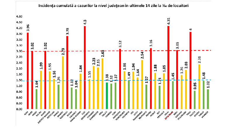 Incidența, la nivelul județului Satu Mare, este de 1,45.