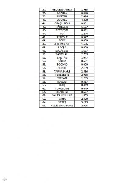Comitetul Județean pentru Situații de Urgență a transmis publicității lista cu incidența cazurilor de COVID în județul Satu Mare. Este important de precizat că incidența cazurilor de COVID - la nivel oficial - a scăzut la 2,71 la mie în județul Satu Mare.