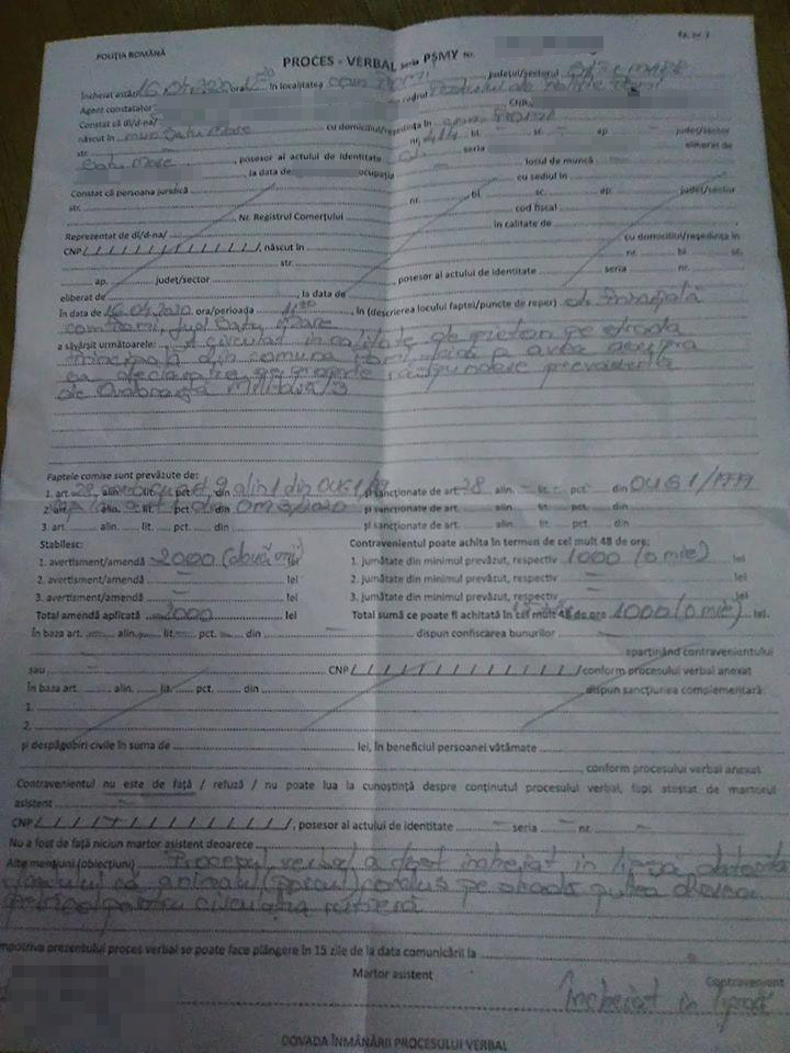 În plină stare de urgență au loc și întâmplări mai hazlii. Așa se face că în data de 16 aprilie 2020, la ora 11.20, unei sătmărence din comuna Pomi, județul Satu Mare, i-ar fi fugit porcul din gospodărie, potrivit declarației soțului. Soțul persoanei sancționate susține că fiind un caz de forță majoră, femeia nu și-ar mai fi luat declarația pe proprie răspundere, a ieșit de urgență pe drum pentru a recupera animalul. Acesta fiind ”un pericol pentru circulația rutieră”, după cum a recunoscut și polițistul care a oprit-o și a amendat-o pentru că nu avea...declarația asupra sa. ”A circulat în calitate de pieton pe strada Principală din comuna Pomi, fără a avea asupra sa declarație pe proprie răspundere, prevăzută de Ordonanța Miliară 3. Procesul verbal a fost încheiat în lipsă datorită faptului că animalul (porcul) condus pe stradă putea deveni periculos pentru circulația rutieră”, scrie în procesul verbal de constatare a contravenției.