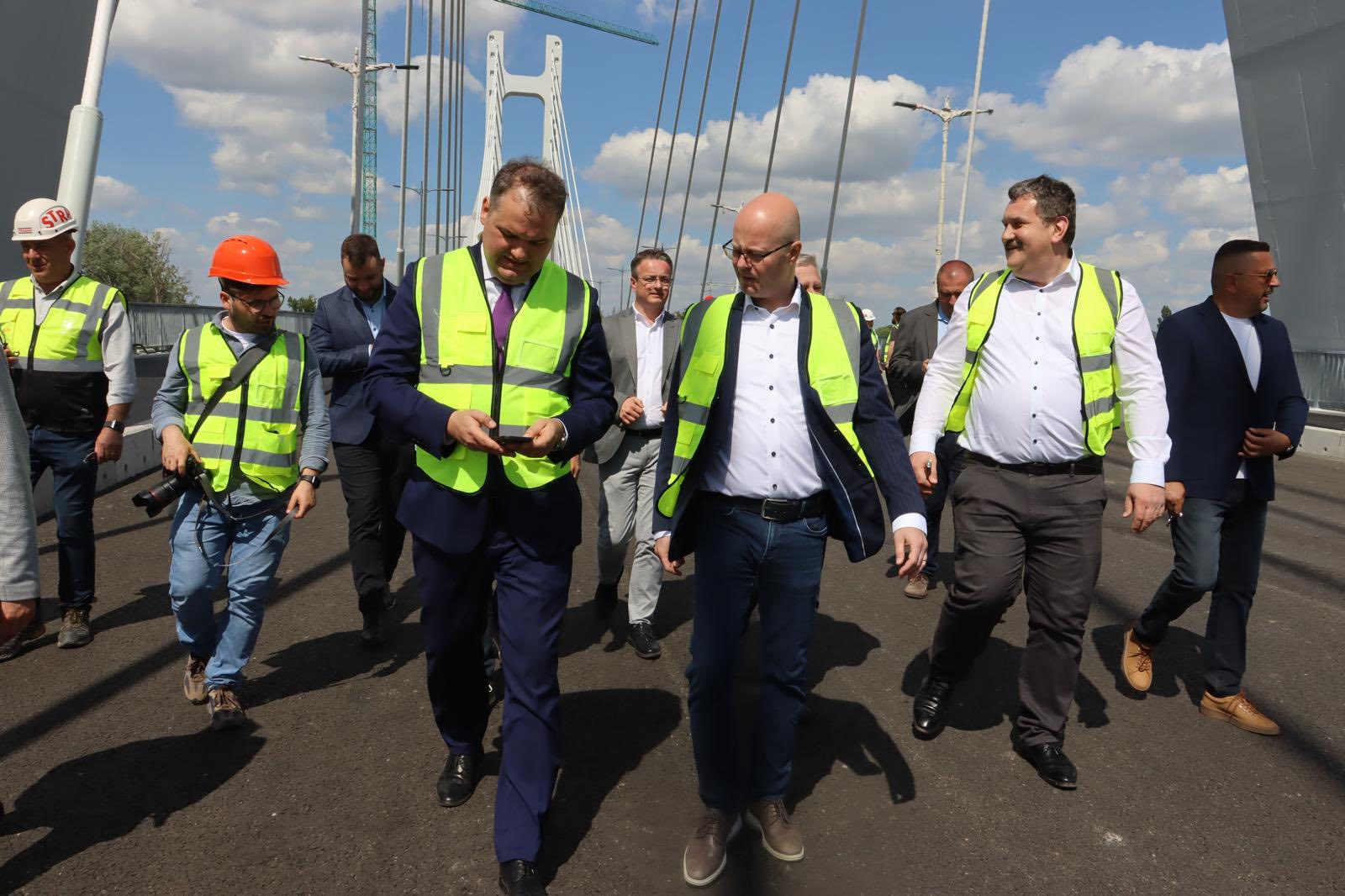 Testele de sarcină ale noului pod cu cabluri peste râul Someș din municipiul Satu Mare au debutat în această dimineață, marcând o etapă esențială înaintea deschiderii circulației rutiere. Evenimentul a fost salutat de oficialități locale și centrale, în frunte cu ministrul Dezvoltării, Cseke Attila, și primarul municipiului, Kereskényi Gábor.