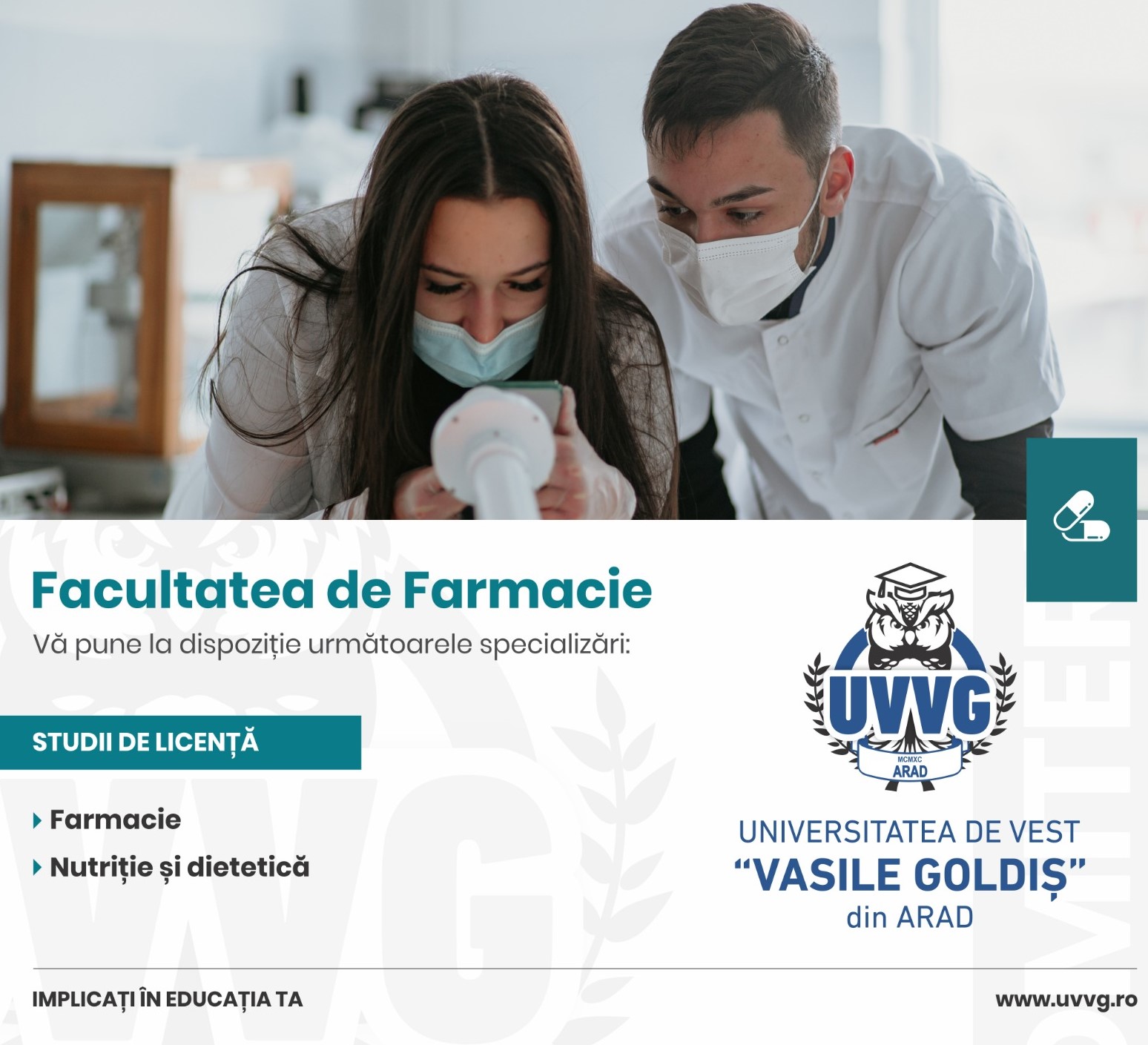 „Facultatea de Farmacie din cadrul UVVG Arad îşi asumă misiunea unui învăţământ modern, formativ prin interdisciplinaritatea şi transdisciplinaritatea domeniilor de studiu fundamentale cu cele din practică, care contribuie la acumularea cunoştinţelor teoretice şi practice precum şi la dezvoltarea competenţelor orizontale şi transversale. Misiunea asumată pentru formarea farmaciştilor şi a nutriţioniştilor şi dieteticienilor este bazată pe standardele de calitate impuse de reglementările sectoriale, standardele ARACIS şi normativele legislative privind învăţământul superior, precum şi a reglementărilor europene şi naţionale privind profesiunea de farmacist, respectiv, nutriţionist-dietetician" - spune S.L. dr. Daniel Răducan, decanul Facultăţii de Farmacie.