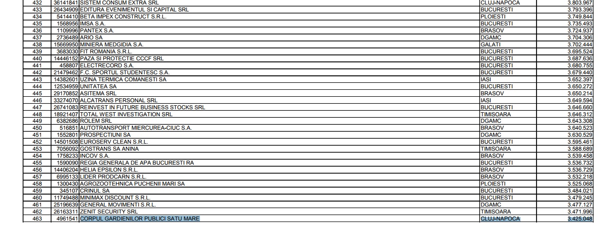 Agenția Națională de Administrare Fiscală a dat publicității topul celor mai mari 500 de datornici din România. Pe această listă apare și fostul Corp al Gardienilor Publici Satu Mare, cu o datorie de ...