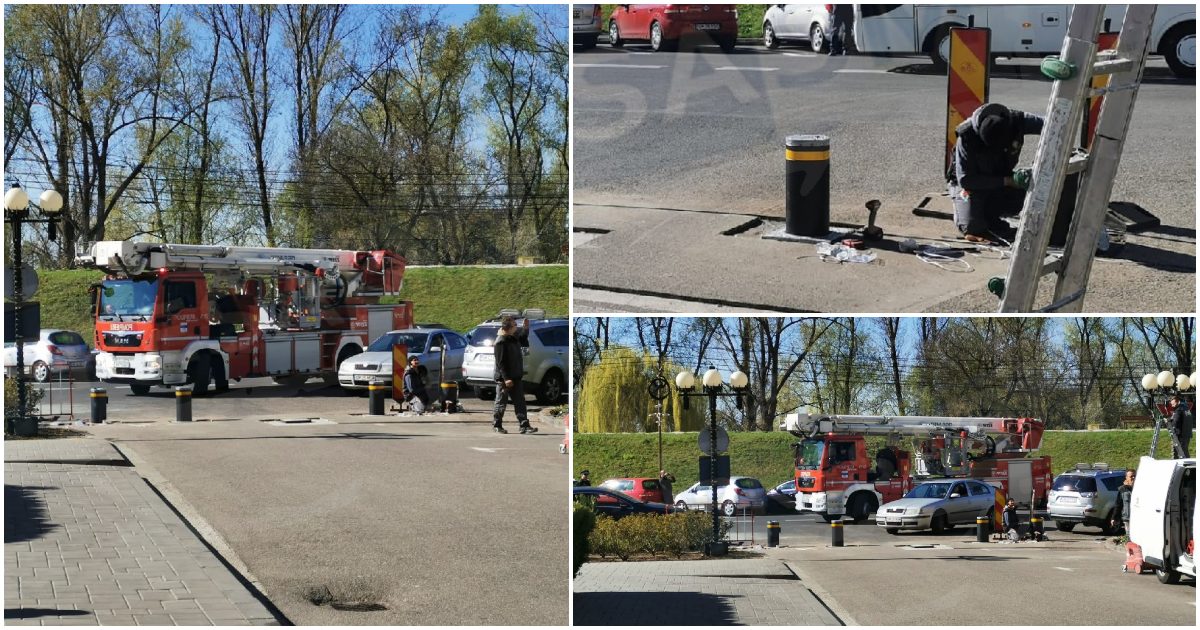 A mai napon üzembe helyezték a Szatmárnémeti Polgármesteri Hivatal előtti parkolóba való behajtását korlátozó, távirányítóval működtetett, behúzható oszlopokra épülő rendszert.