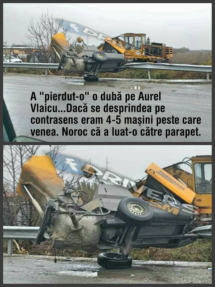 ”A pierdut-o o dubă pe Aurel Vlaicu. Dacă se desprindea pe contrasens, eram 4-5 mașini peste care venea. Noroc că a luat-o spre parapet”, a spus un martor pentru activiștii de la Drivers Satu Mare.