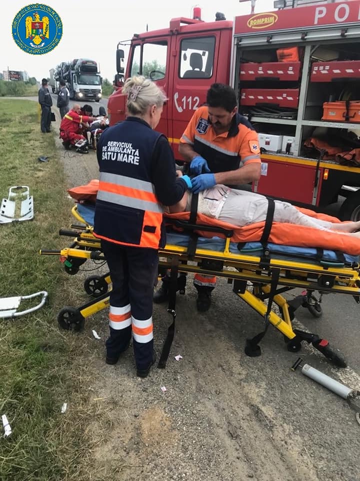 S-a intervenit cu accesoriile specifice de descarcerare pentru extragerea persoanei blocate în autoturism. Ambelor victime, găsite conștiente, însă cu multiple traumatisme, li s-au acordat primele îngrijiri medicale la fața locului, ulterior fiind transportate la Unitatea de Primiri Urgențe Satu Mare.