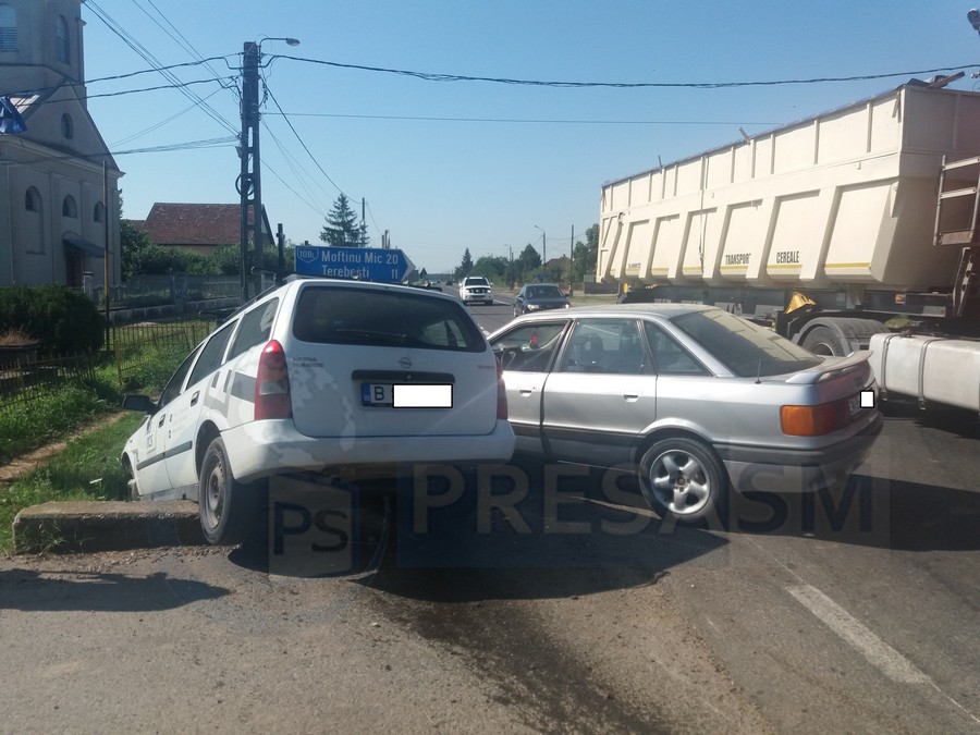 Fiindu-i obturat câmpul vizual, șoferul AUDI-ului nu l-a observat pe cel al OPEL-ului, cele două autovehicule intrând în coliziune frontală. Din cauza impactului puternic, ambele mașini au fost proiectate într-un șanț de pe marginea drumului.