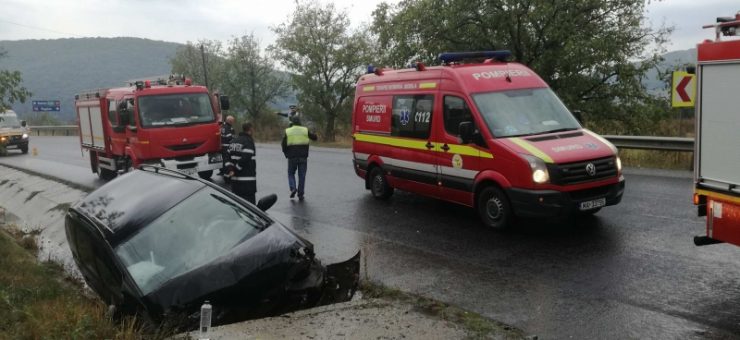 SURSA: bistriteanul.ro FOTO. Accident grav. Un sătmărean a intrat cu mașina într-un podeț