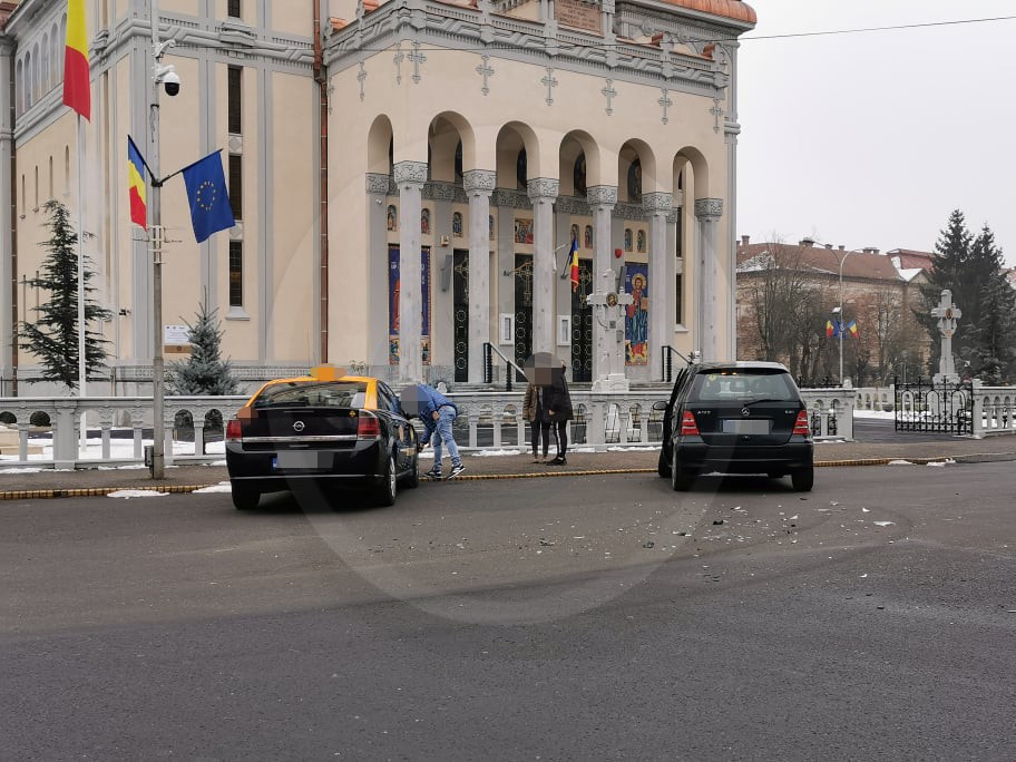 Cei doi șoferi au degajat drumul și au parcat în fața Catedralei Ortodoxe ”Adormirea Maicii Domnului” pentru a ajunge la o înțelegere amiabilă.