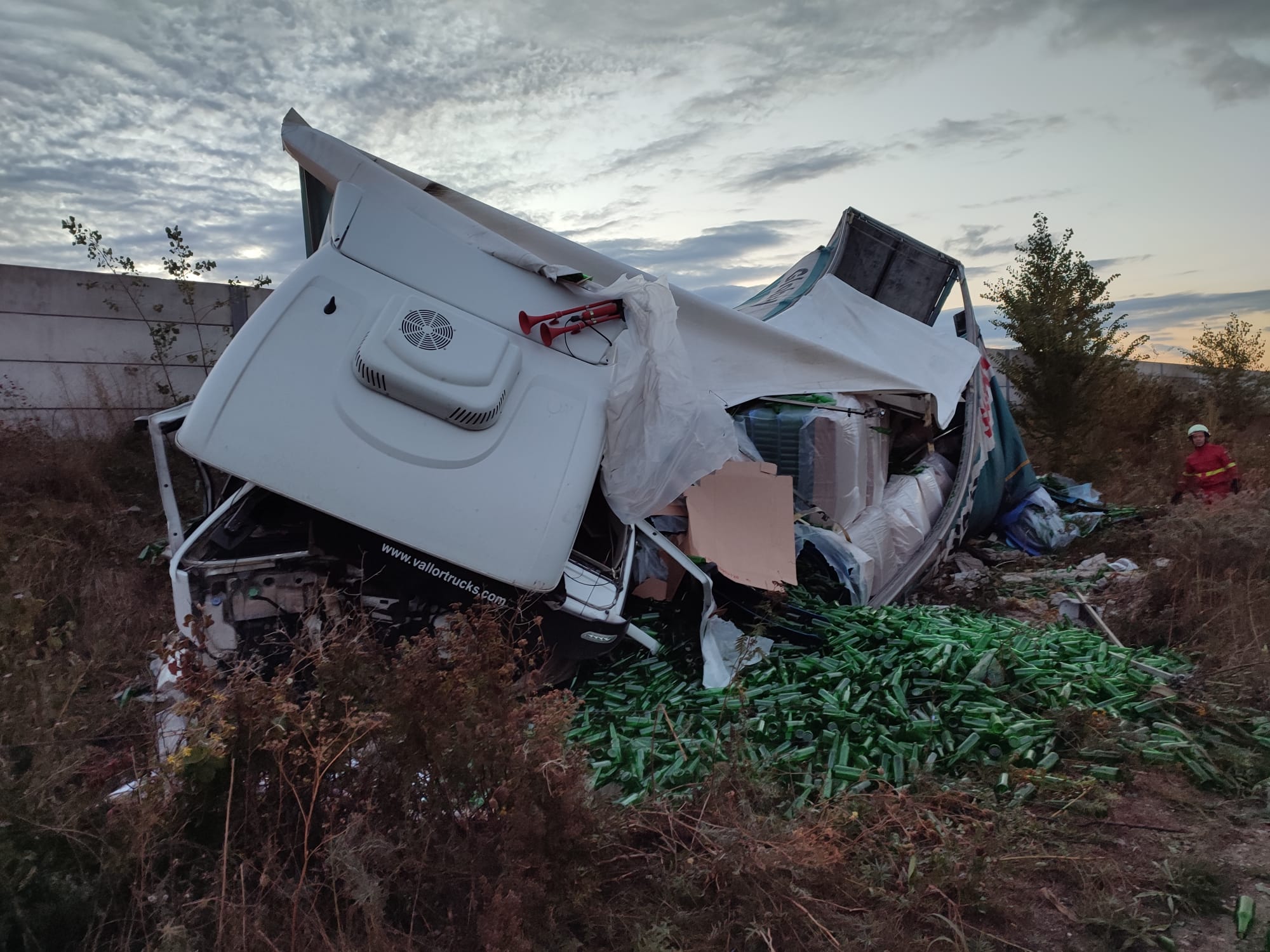 Potrivit G4Media, șoferul a pierdut controlul asupra direcţiei de mers, iar TIR-ul a trecut de separatoarele de sens şi a pătruns pe contrasens.