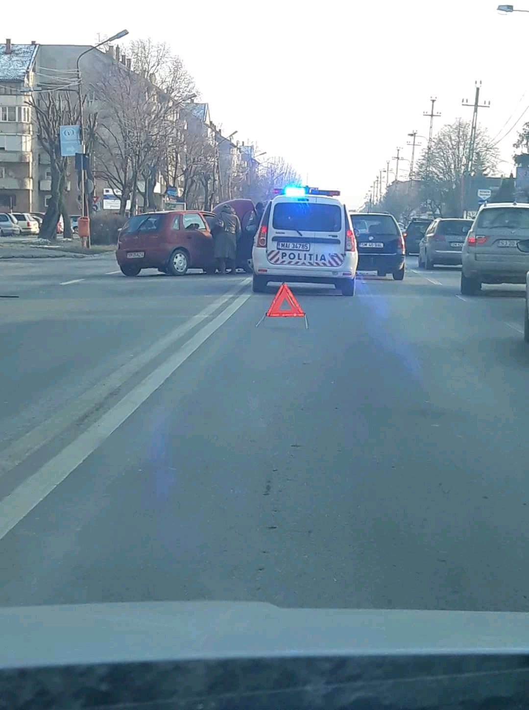 Accident rutier pe Bulevardul Lucian Blaga din municipiul Satu Mare. Din câte se pare, șoferul unei mașini care a ieșit din Cartierul Carpați nu a acordat prioritate de trecere unei mașini care se afla pe drumul cu prioritate.