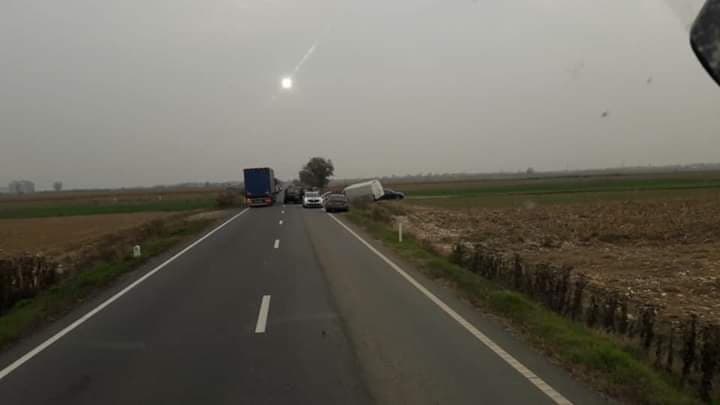 FOTO. Accident rutier, o autoutilitară a ajuns în șanț. Trafic îngreunat