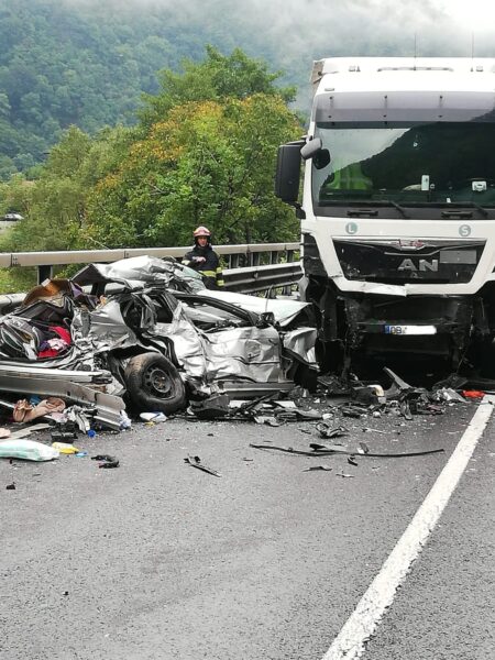 Din imaginile furnizate de la locul tragediei, se observă că mașina în care se aflau cei trei a fost practic zdrobită în urma impactului cu TIR-ul.