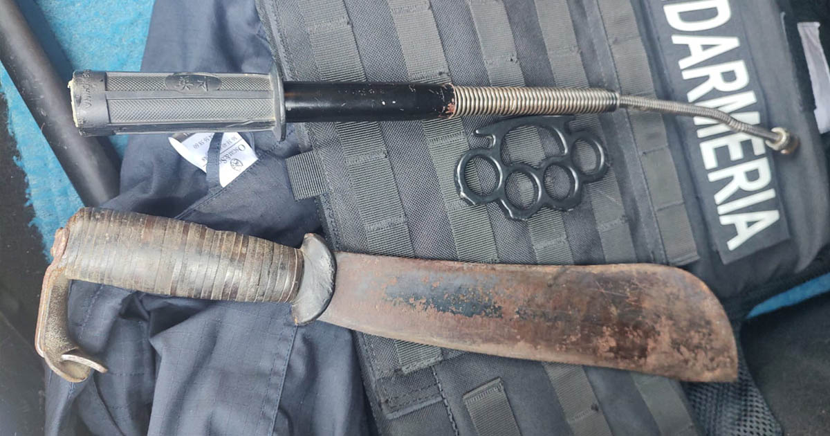 La vederea oamenilor legii, tânărul a încercat să fugă, dar a fost interceptat de patrula de jandarmi. După legitimare, jandarmii i-au comunicat tânărului că-i vor face un control corporal, moment în care tânărul a rupt-o la fugă încă odată. Din nou jandarmii l-au interceptat, l-au imobilizat, iar cu ocazia controlului corporal efectuat au descoperit motivul tentativei de alergare. Tânărul avea asupra sa un baston telescopic din metal, un box si o macetă.