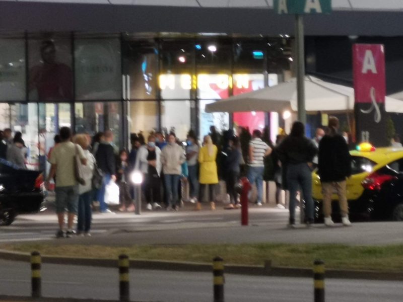 Sistemul de alarmarea în caz de incendiu a pornit astăzi în incinta mall-ului, iar clienților și personalului angajat li s-a cerut să părăsească în mod ordonat incinta. Clienții s-au adunat în grupuri în fața ușilor de acces.