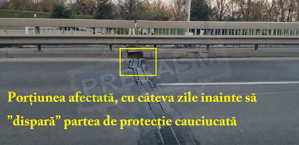 Pericol de accident pe Podul Decebal din municipiul Satu Mare. Conform informațiilor PresaSM, o bucată de cauciuc din zona rosturilor de dilatare ale podului s-a desprins, iar niște bucăți ascuțite de metal, în care se ancora bucata de cauciuc, risca să avarieze anvelopele autoturismelor.