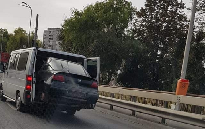 În schimb, legea a fost încălcată în mod clar de către un alt șofer, care a fost surprins pe Podul Decebal în timp ce transporta într-o dubă caroseria unei mașini, care era pe jumătate în afara cadrului. Nu doar că este ilegal, dar este și foarte periculos pentru siguranța celorlalți participanți la trafic.