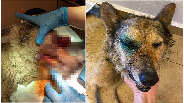 Un bun samaritean a salvat câinele aflat în suferință și l-a transportat la un cabinet veterinar. Patrupedul avea ochiul scos, maxilarul sfâșiat și o sfoară legată strâns în jurul gâtului.