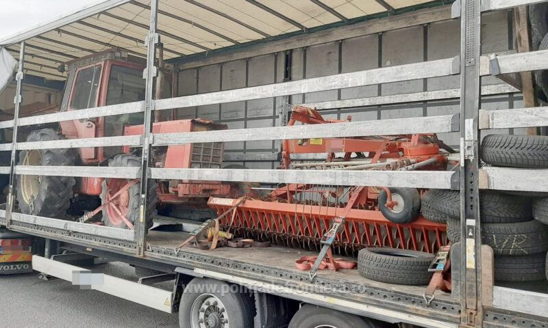 Acesta transporta, conform documentelor de însoțire a mărfii, cauciucuri uzate, un tractor şi utilaje agricole uzate de la o societate comercială din Germania pentru trei societăţi comerciale din România.