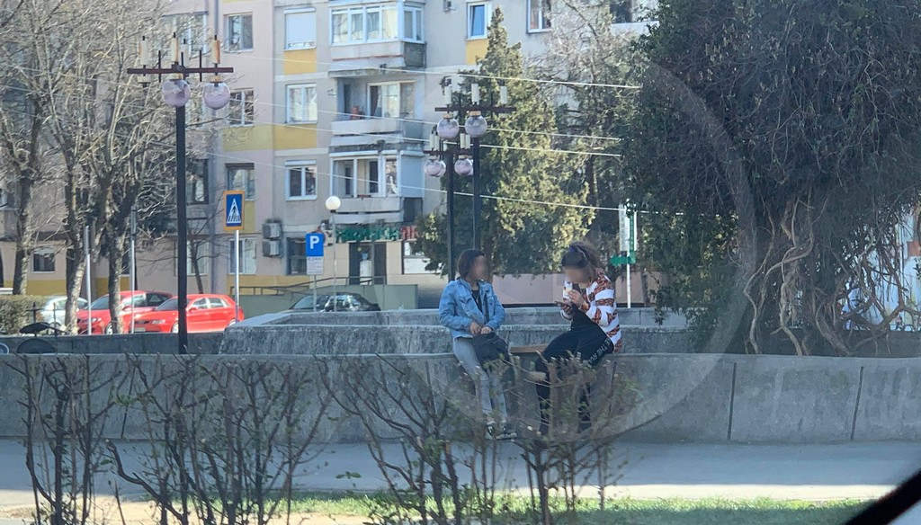 Pe Drumul Careiului, mai mulți tineri stăteau la taclale în plină stradă, fără măști de protecție, fără mănuși.